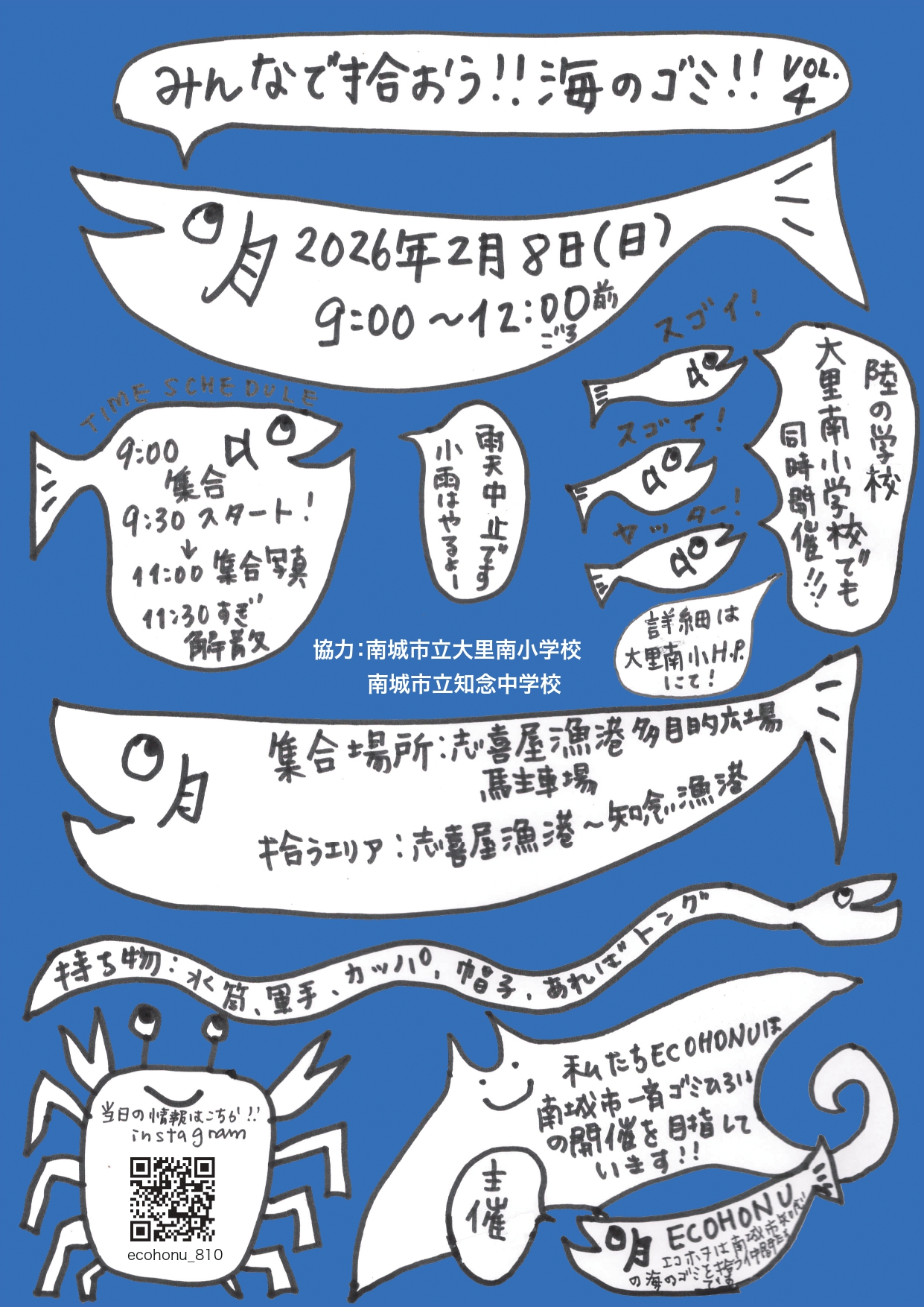 2/8(日)、おなじみエコホヌさん主催による海のごみ拾いイベントを実施します!