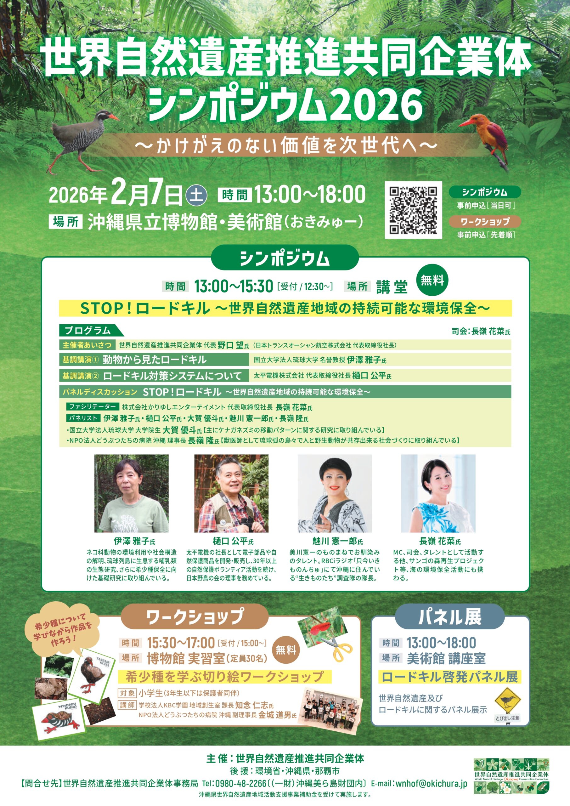このたび、世界自然遺産推進共同企業体シンポジウム2026を開催し、「STOP!ロードキル ~世界自然遺産地域の持続可能な環境保全~」と題した野生動物のロードキル問題と環境保全に関する講話を無料で開催します。