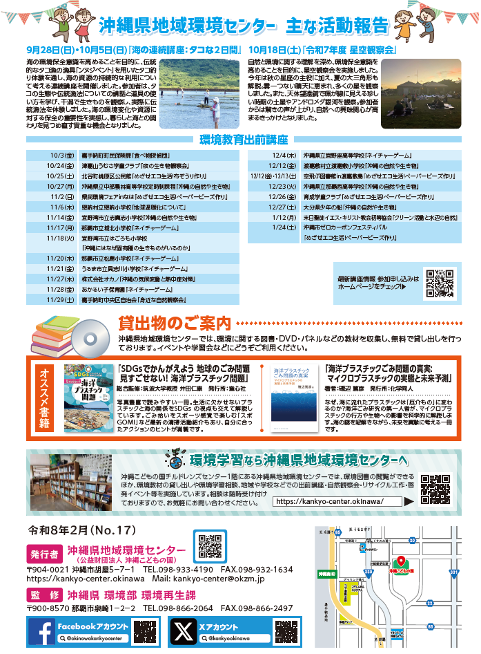 沖縄県地域環境センター:〒904-0021 沖縄市胡屋5-7-1 沖縄こどもの国チルドレンズセンター 1F