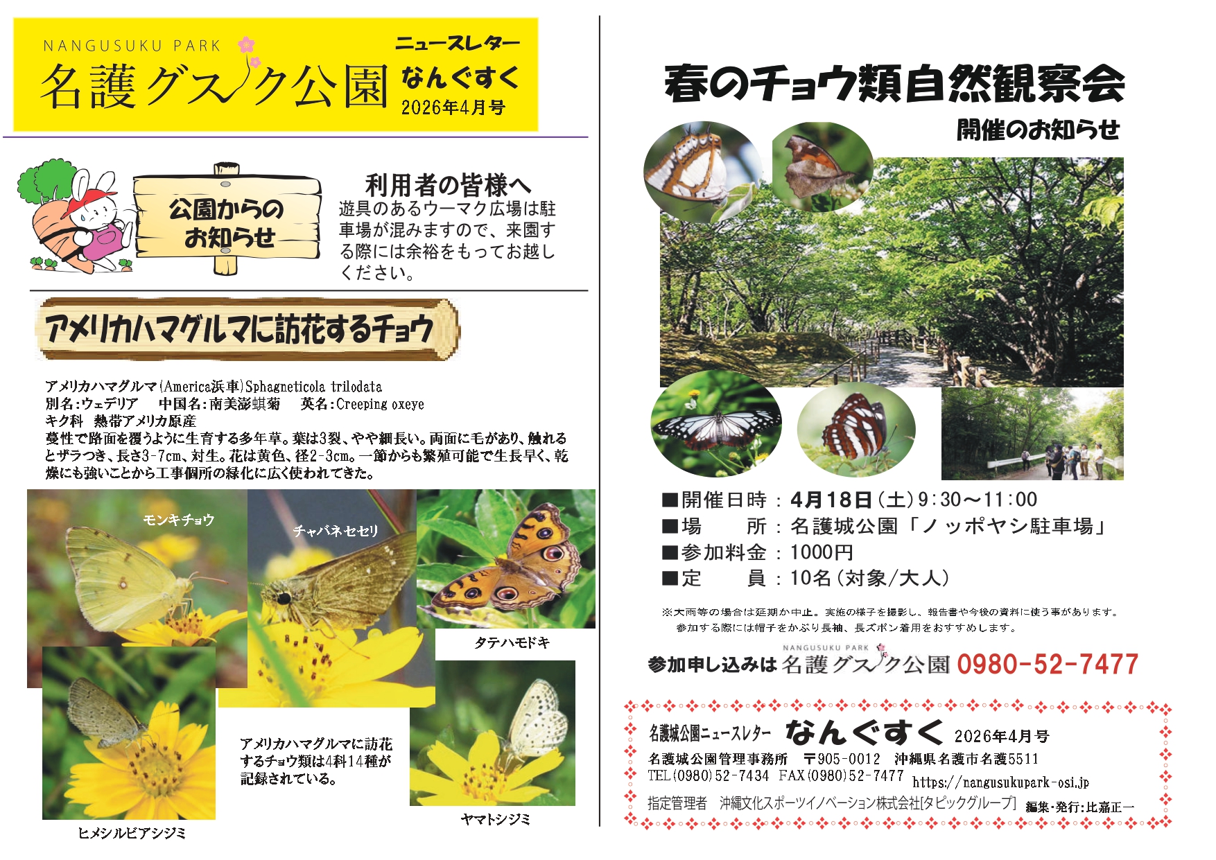 【お知らせ】春のチョウ類自然観察会開催のお知らせ