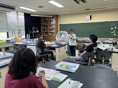 今回の講座は、『水』をテーマに実施しました。当たり前のように蛇口をひねると水が流れ、排水溝へと流れていきますが、水がどこから生まれどこへ行くのでしょうか。日常にある水の循環に着目し、水環境の現状を学び限りある水循環について考えました。地球儀型のビーチボールを投げ合ったり、すごろく等のゲームを取り入れることで楽しく学べたとの感想が聞けました。近年では水に困らない生活ですが社会生活や気候変動における水環境への影響等について理解を促し、限りある水資源を考える講座をこれからも展開していきたいと感じました。