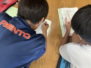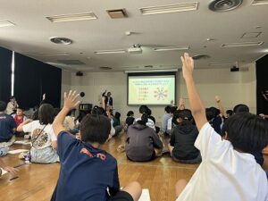 講座ではまず、地球温暖化が地球の平均気温が上がっていく現象であることを説明しました。今年の沖縄の最高気温が過去最高を記録したことに触れ、温暖化が身近な問題であることを全員で確認しました。次に、原因は大気中の温室効果ガスのバランスが崩れたことにあり、その一つである二酸化炭素は物が燃えるときに発生することを伝えました。