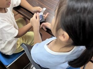 中盤には、沖縄の自然環境図に生き物カードを配置していく「生き物マップ作り」に挑戦しました。低学年の児童は先生に教わりながら、高学年の児童は自分の知識をフルに活用して次々と適切な場所へカードを貼っていきました。まとめの時間には、多様な自然環境を写真で振り返りながら、自分が選んだ生き物について元気に発表しました。