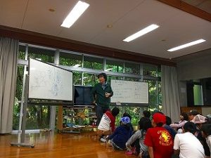 森の散策の終了後は、チームごとに発見できた生き物やどこにどんな生き物がいたのか等講師が解説した。「身近な場所にも様々な生き物がいて、見つけようとがんばって見ると色々な発見があり面白いと感じる事が大切で、この自然がずっと残るようにするには、どうすればいいのか考えてみて下さい」と締めくくった。
