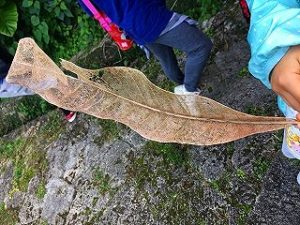 グループごとに「指令カード」を持って、末吉公園の森に隠れている生き物や植物などの自然を探す「森の指令ゲーム」を行い普段気づかない自然の面白さに気づいてもらうことを目的に実施した。