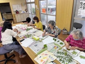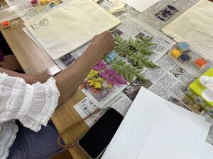 その後、事前に採取していた葉っぱを使用し、『葉っぱスタンプエコバックづくり』を開始。