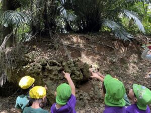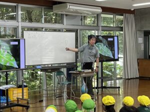 ゲーム終了後は、「森の家みんみん」に戻りチームごとに発見できた生き物や感じたことを振り返り、「全部見つけることができた」「アカショウビンの声は聞こえなかった」という感想があり、自然の中で生きものを探す難しさや楽しさを改めて実感していました。また指令ゲームで見つけたもの以外にも多くの質問が上がるなど、今回の自然観察で自然や生き物に関する興味関心が高まった様子でした。