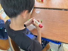 やってみたい」など楽しみながらリサイクル工作に取り組んでいました。