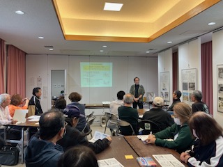 地域住民が世代を超えて集まった今回の講座では、まずアイスブレイクとして自己紹介ゲームを行い、楽しみながらグループ分けと交流を図りました。