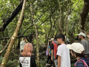 講師はまず、沖縄本島北部と南部の自然の違いについて説明。