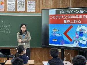 魚の量を上回るとも言われていることを紹介し、自分たちにできることはなにか考えてもらいました。
